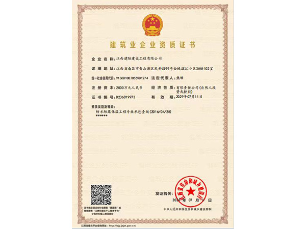 江西建防建設工程有限公司是江西省較早成立的一家防水工程施工單位,公司 成立于1999年3月,位于南昌市高新技術產業開發區內,擁有一級防水防腐保溫資質、二級裝修裝飾資質、安全許可證等多項資質證書,公司堅持以質優的防水設計,科學的防水選材,嚴格的施工管理以及完善的質量服務,全面滿足客戶的需求,并保持在防水施工技術領域內的地位。同時與東方雨虹公司合作,成為東方雨虹公 司在江西的合作伙伴,成立了東方雨虹建筑修繕(南...